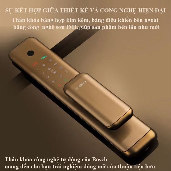 Khóa bảo mật bằng vân tay, thẻ từ, mã số, chìa cơ, app wiffi. Công nghệ mật khẩu ảo và nhận diện vân tay dựa trên cả da và mạch máu cho độ chính xác hoàn hảo. Dây chuyền sản xuất chuẩn cơ khí Đức cùng khâu kiểm tra chất lượng khắt khe tạo nên khóa Bosch EL500 có tuổi thọ bền bỉ. Bosch cam kết đem lại cho người dùng trải nghiệm ấn tượng, an toàn và đẳng cấp.