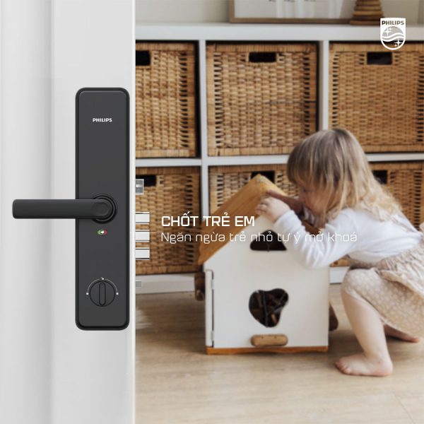 Ngoài ra, một tính năng thân thiện với người dùng, được nhiều gia đình quan tâm đó chính là chốt trẻ em cũng có mặt trên siêu phẩm này. Chiếc chốt này sẽ ngăn ngừa trẻ nhỏ tự ý mở khoá từ bên trong.